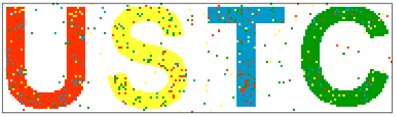 图二,利用高维密集编码传输五色的中国科学技术大学英文简写(USTC)的实验结果。